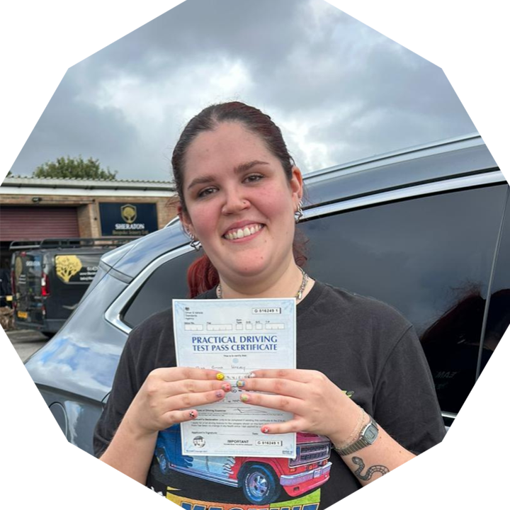 Emma’s words: “I needed to make the most of my time with an intensive course — and Steve made every lesson count. Patient, professional, and genuinely encouraging, he gave me the confidence to improve quickly. I passed first time with zero driving faults.“